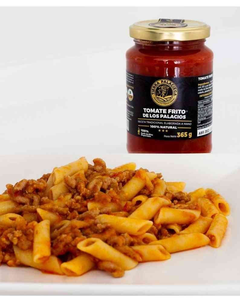 Receta casera elaborada a fuego lento con tomates y hortalizas frescas de Los Palacios y Villafranca. Tomates de cosecha propia, madurados 100% en la planta y recolectados manualmente en su punto óptimo de maduración.